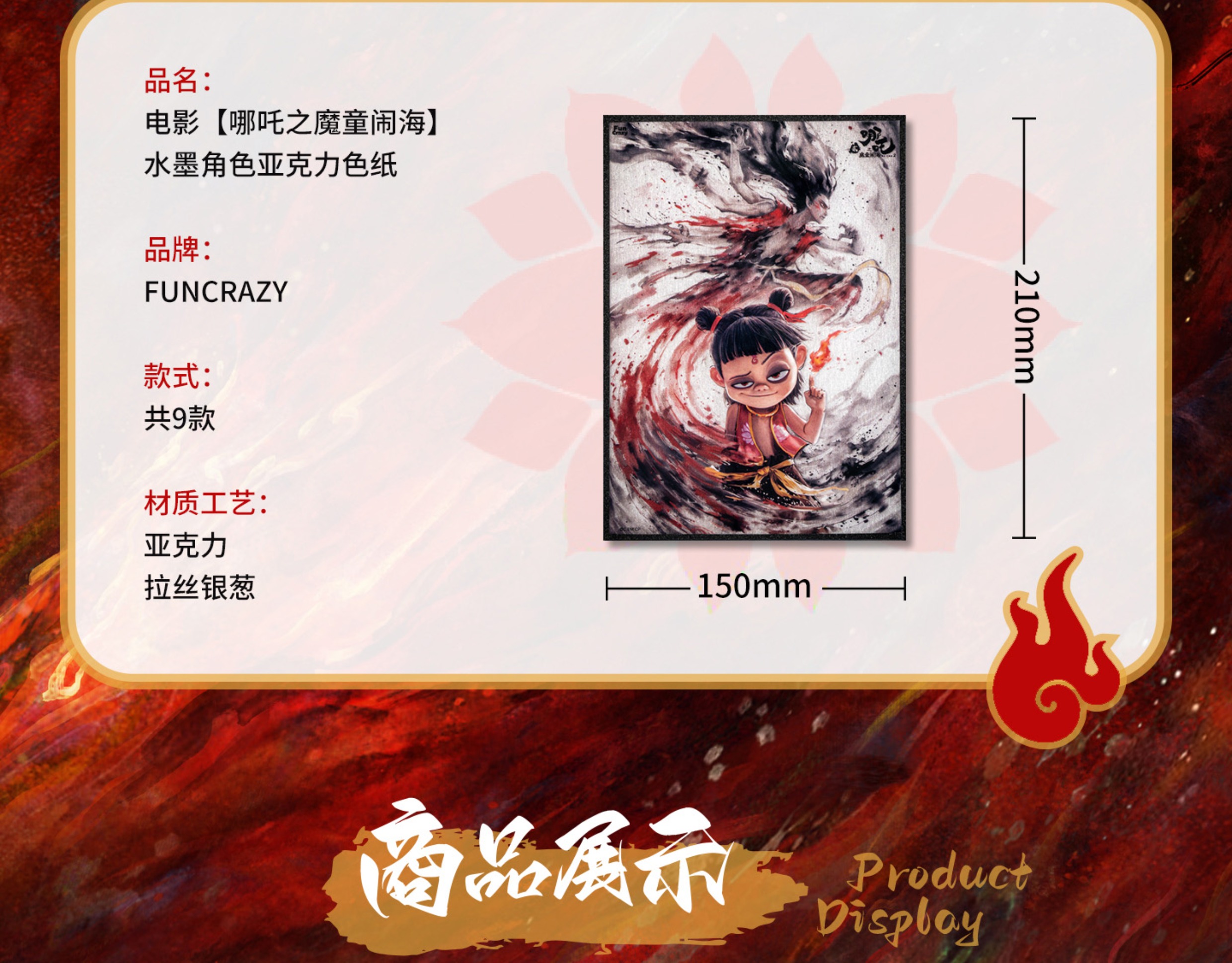 Ne Zha 2 × FUNCRAZY Official Merch - Character Iridescent Acrylic Art Poster (21 cm)