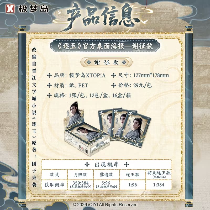 [Preorder 50 days] Pursuit of Jade (2026) Tencent x XTOPiA Official Merch - Zhang Linghe (Xie Zheng) Mini Poster Gacha Blind Pack