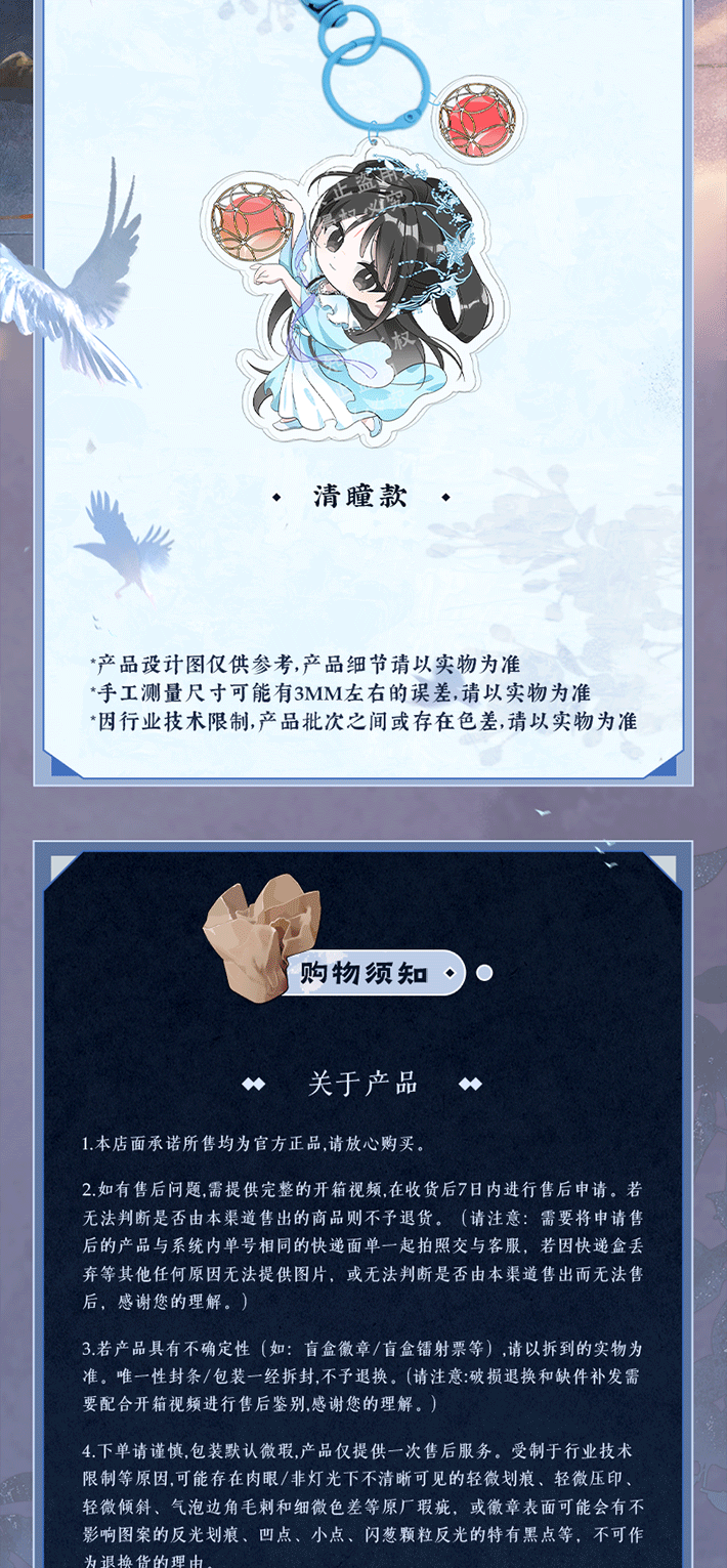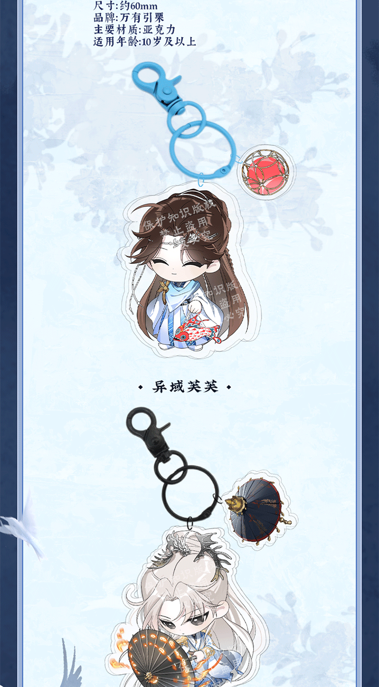 Sword and Beloved Official Merch - Cheng Yi (Wang Quan Fugui) / Li Yi Tong (Qing Tong) Character Charm Keychain (preorder)
