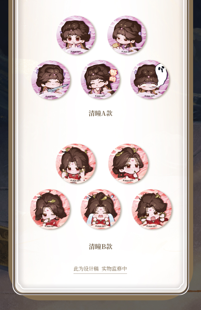 Sword and Beloved x TEAMMI Official Merch - Cheng Yi (Wang Quan Fugui) / Li Yitong (Qing Tong) Character Emoji Badge Set (preorder)