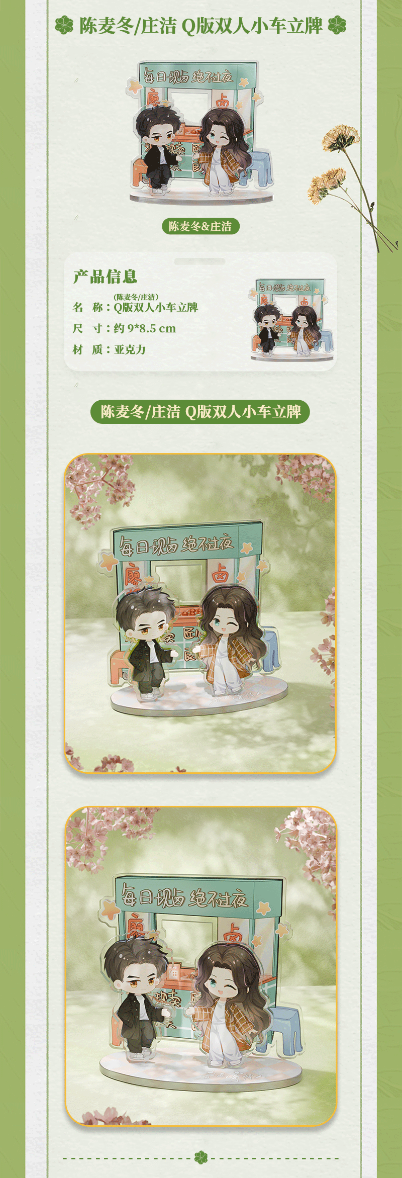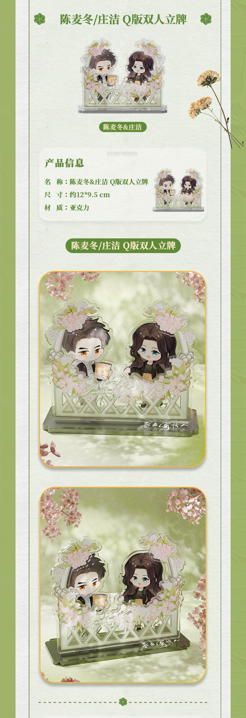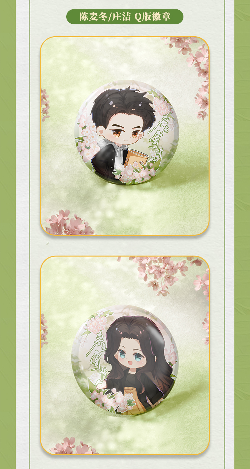 Official merch from the Chinese drama "Will Love in Spring (2024)" by Li Xian (as Chen Mai Dong) and Zhou Yu Tong (as Zhuang Jie).